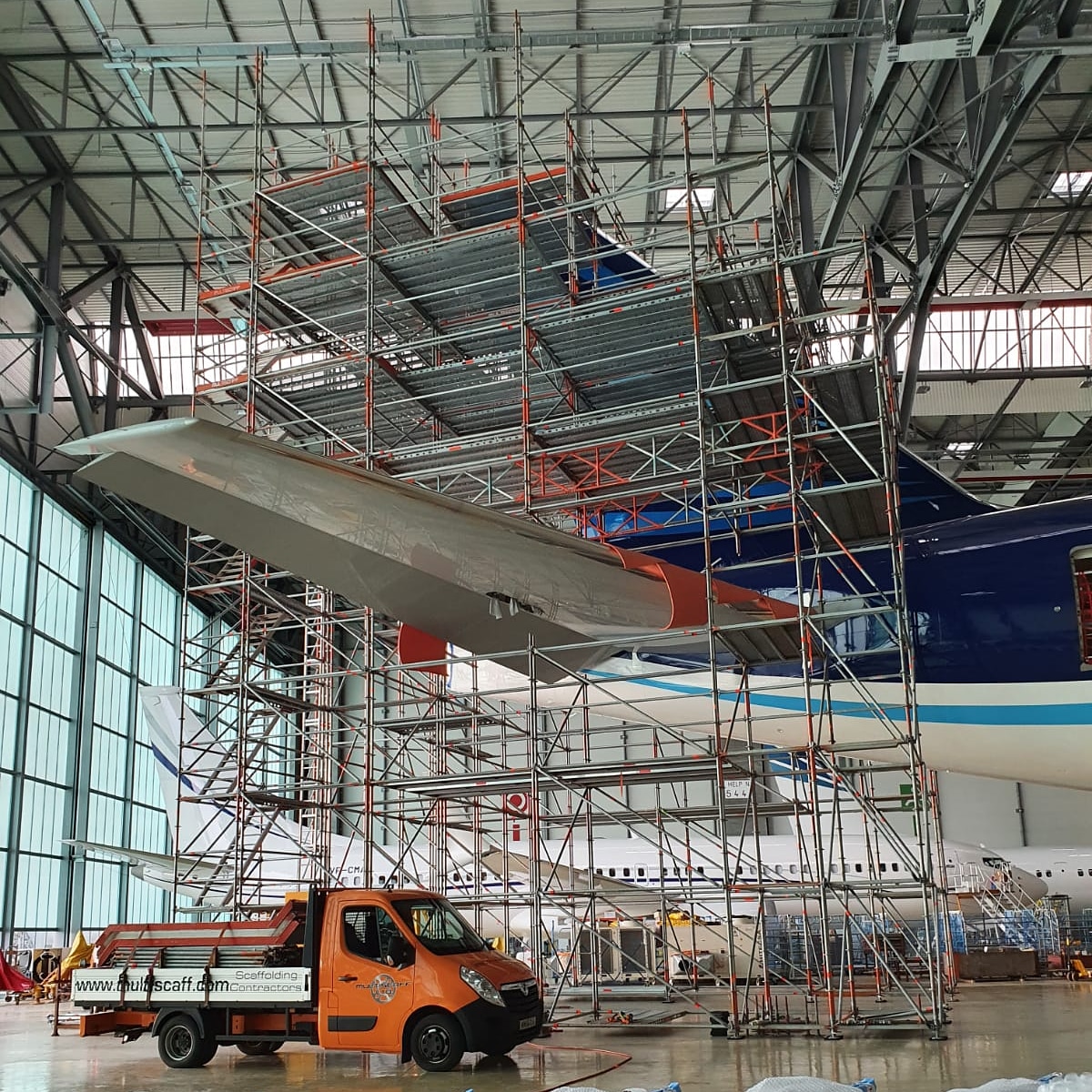 This pioneering project involving the world’s first-ever private Boeing 777, in which we installed a full tail docking for our client. This aircraft is the first of its class in the world to have scaffolding installed around it.